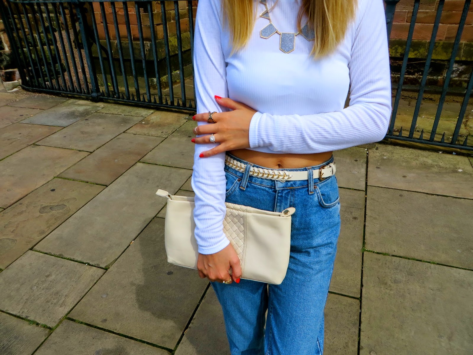 Sunglasses: House of Harlow 1960 ‘Daisy’//Necklace: House of Harlow 1960 (available here)//Top: TopShop (available here)//Belt: Primark//Bag: Cole Haan //Jeans: TopShop //Shoes: Cole Haan ‘Manhattan’ Ballet