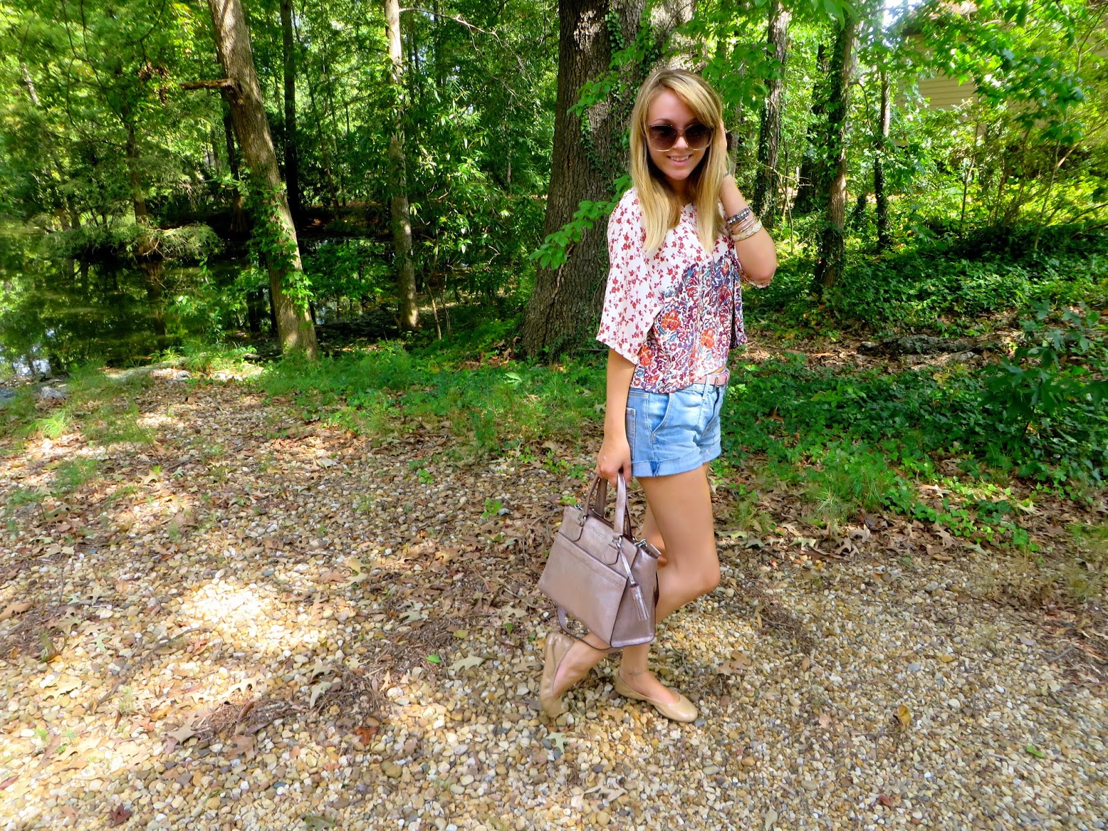 Sunglasses: House of Harlow 1960//Top: House of Harlow 1960 (available here)//Shorts: American Eagle //Belt-Bag-Shoes: Cole Haan’ Manhattan’ Ballet //Bracelets: House of Harlow 1960 and Forever 21 (similar here)