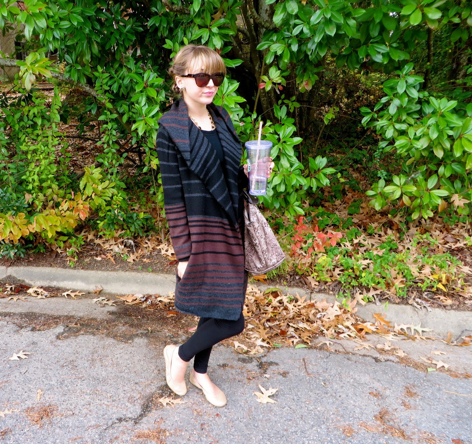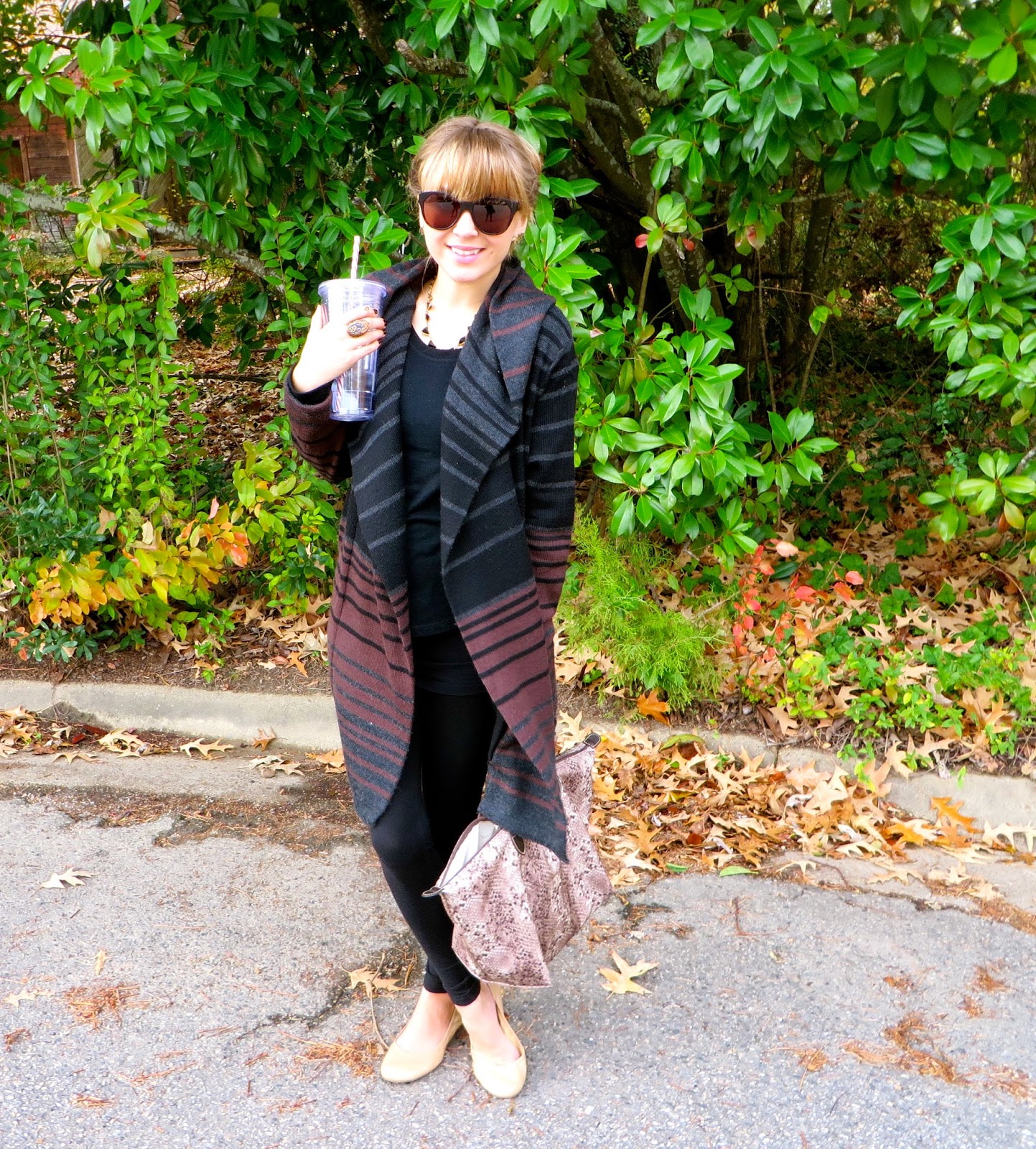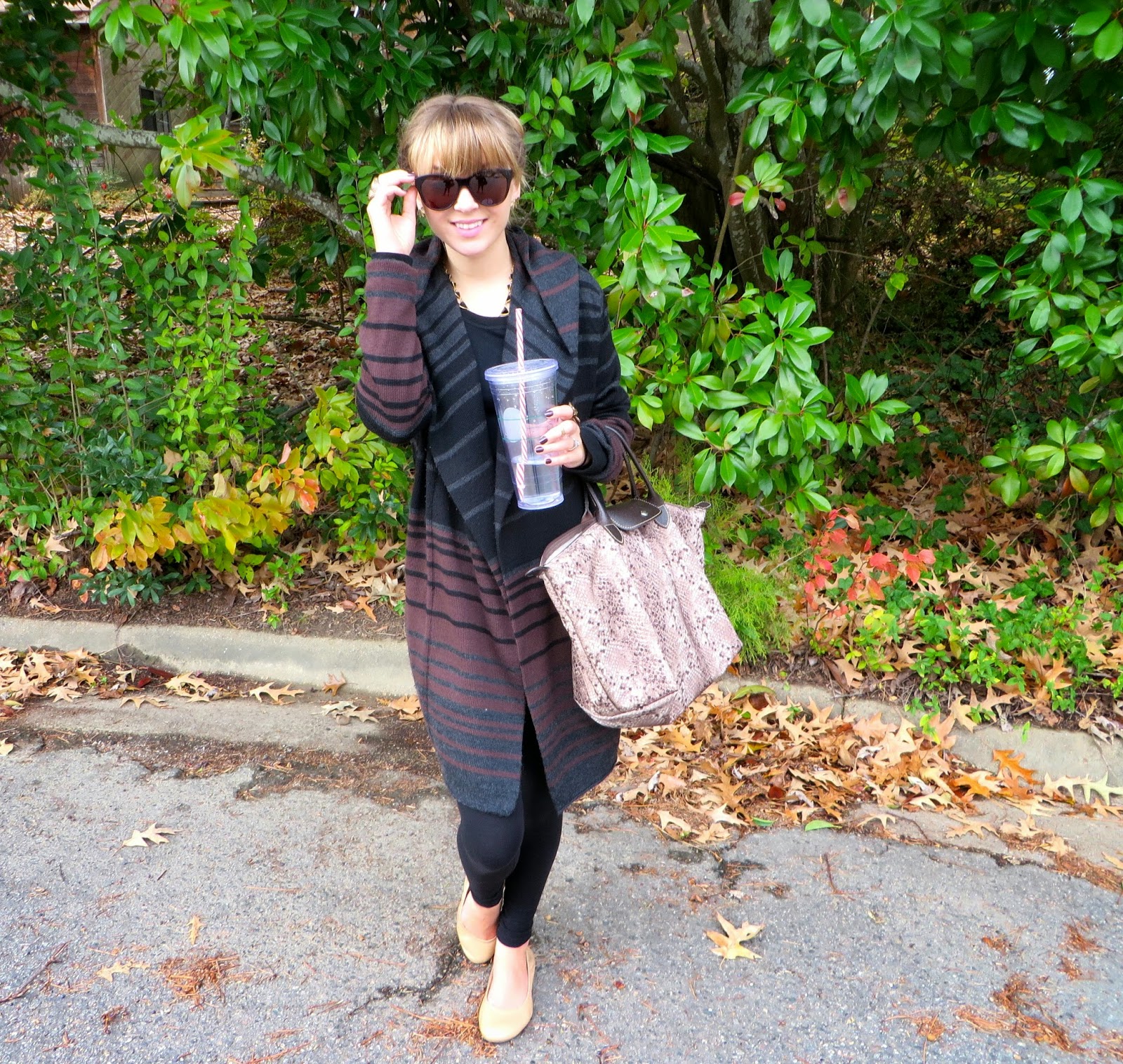 Sunglasses: House of Harlow 1960 ‘Cary’//Earrings: House of Harlow 1960 ‘Antiqued Feather’ Studs//Necklace: House of Harlow 1960//Cardigan: Cynthia Rowley//Top: Mossimo Supply Co. at Target //Leggings: Forever21 //Bag: LongChamp ‘Le Pliage’ //Shoes: Cole Haan ‘Manhattan’ Ballet