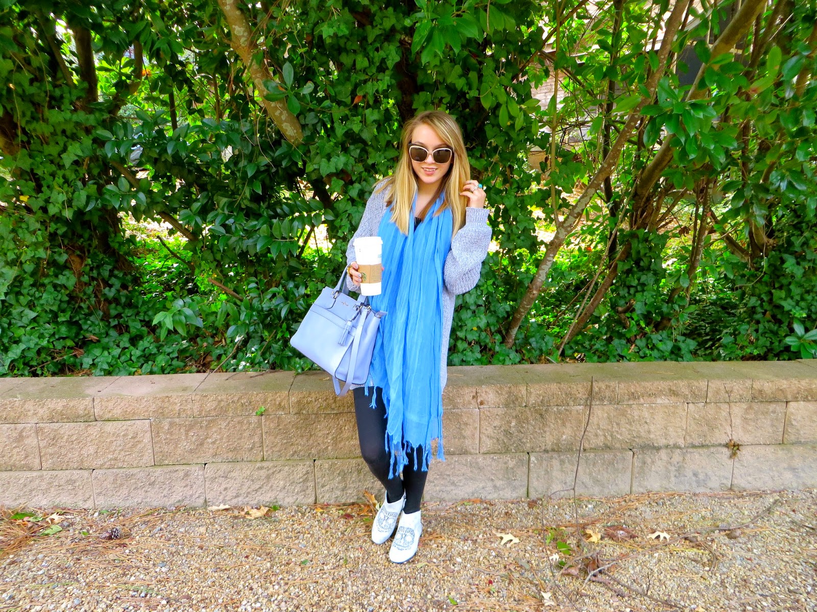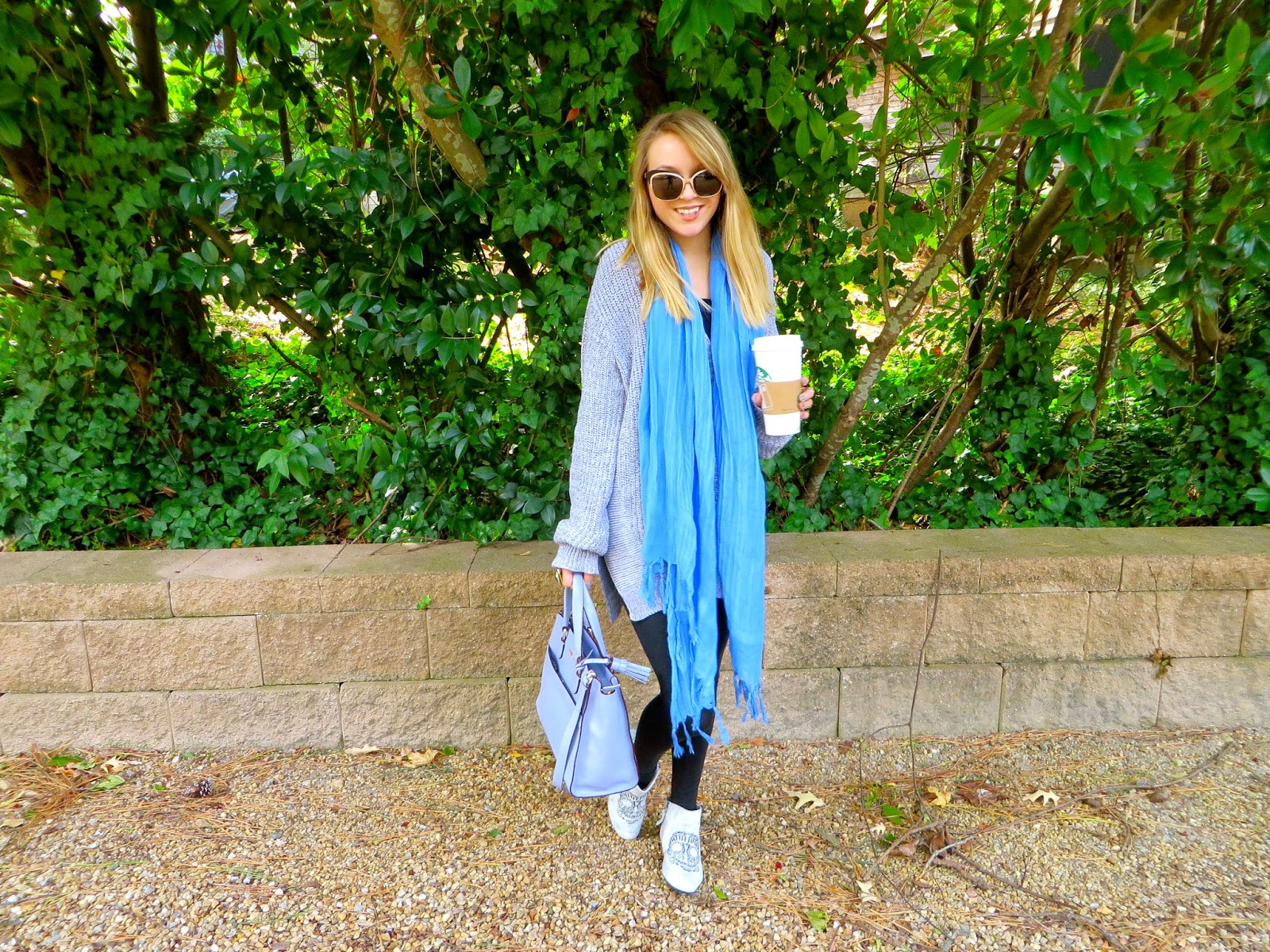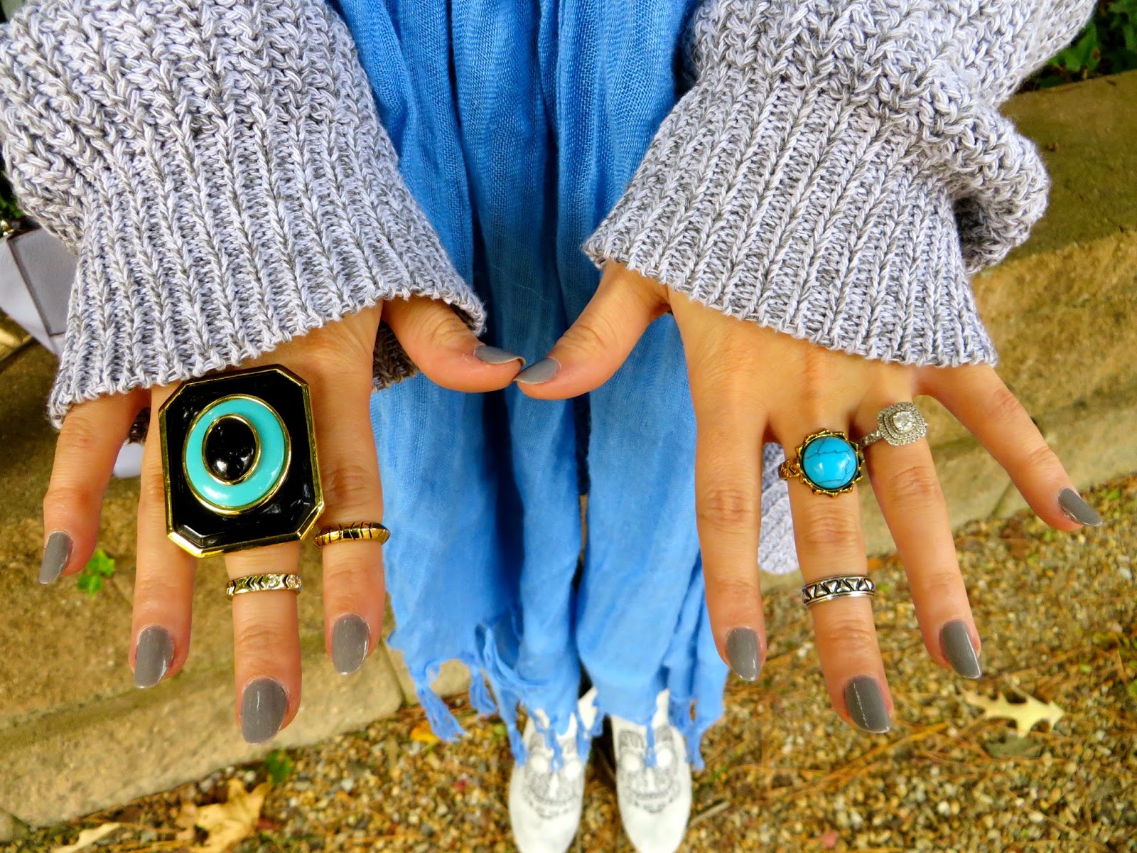Sunglasses: House of Harlow 1960 ‘Emma’ //Scarf: Love Quotes//Sweater: Silence + Noise //Bag: Cole Haan //Leggings: H&M//Shoes: House of Harlow 1960 ‘Mara’ Bootie //Rings: House of Harlow 1960 //Nails: OPI ‘I Don’t Give a Rotterdam!’ (available here)