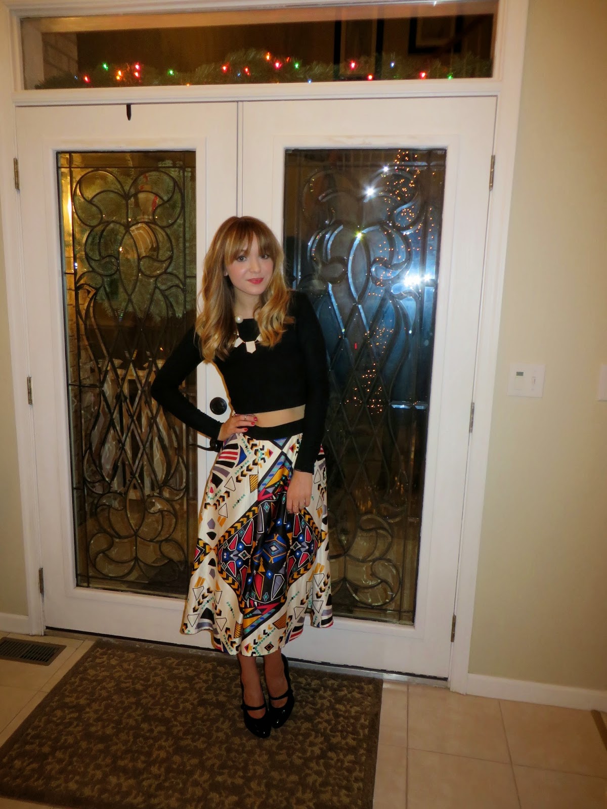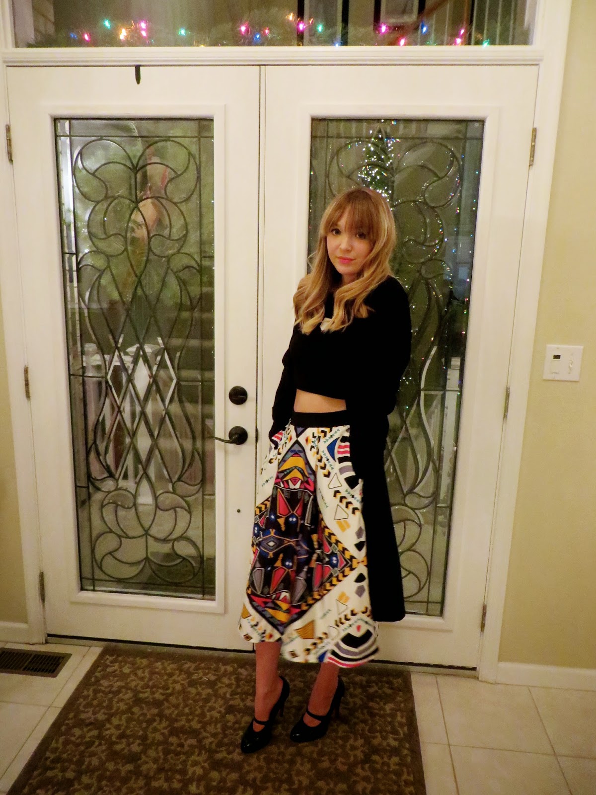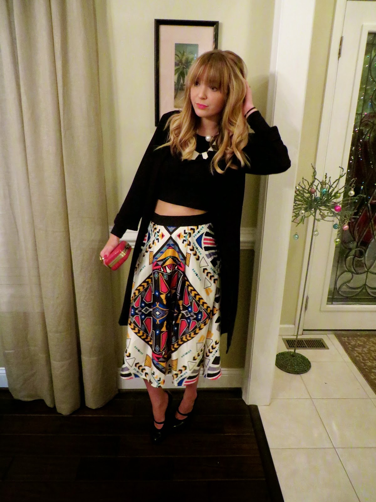 Necklaces: House of Harlow 1960 and Zara Double Pearl Choker//Jacket: Primark Long Blazer//Top: TopShop (available here)//Clutch: House of Harlow 1960 ‘Olivia’ in Red Croc //Skirt: Inseparable Printed Midi Skirt via Francesca’s (available here)//Shoes: Christian Louboutin ‘Charleen’ Pumps