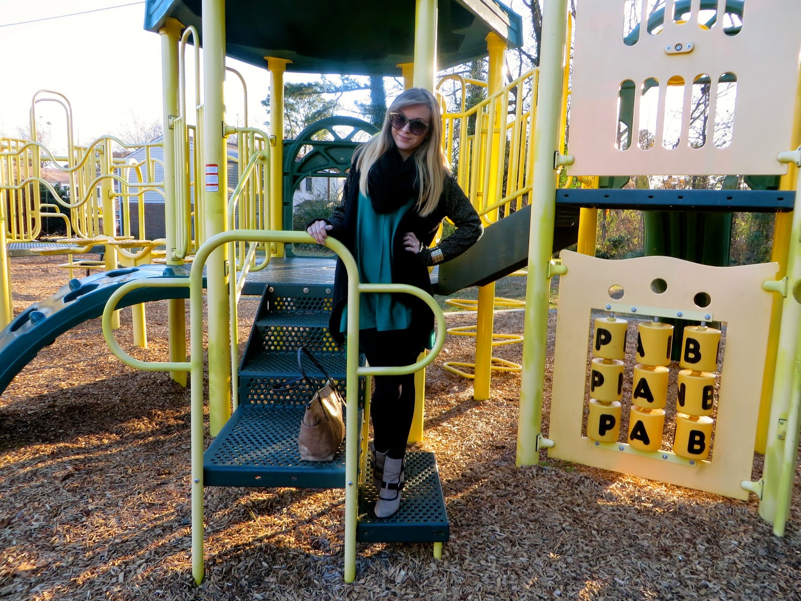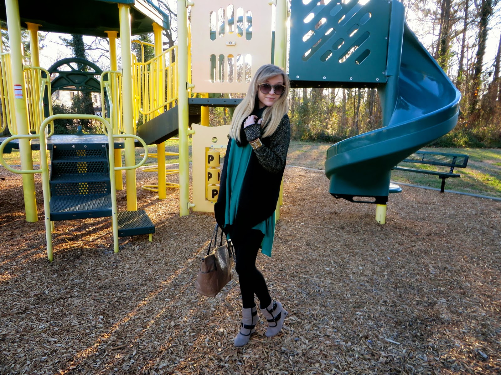 cupsofcouture January 11, 2015 Accessories Parker the Snake in the Playground Sunglasses-Shoes-Cardigan-Bracelet: House of Harlow 1960//Scarf-Top-Leggings: H&M//Bag: Cole Haan//Bracelet: TOMs for Target Follow: You may also enjoy:Wandering Through Vigo