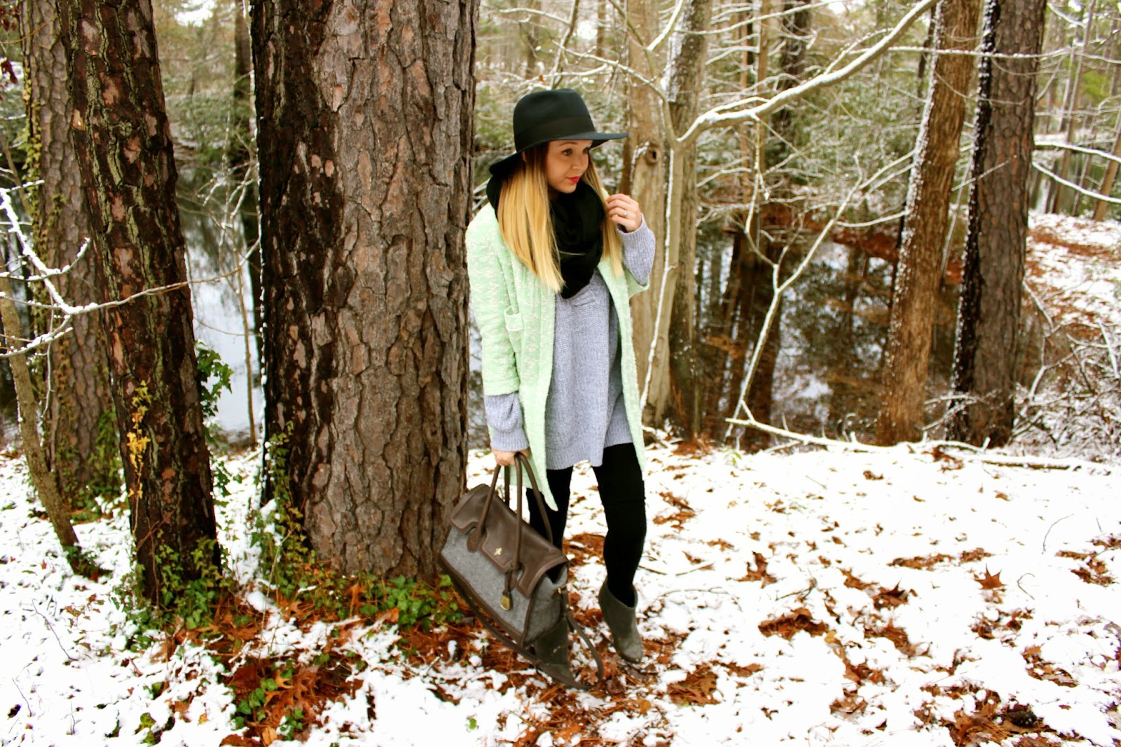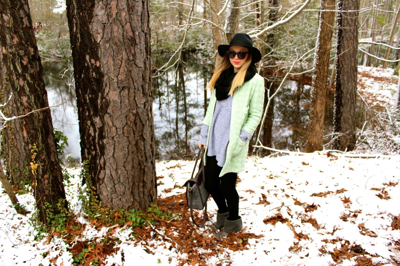 Hat: Akubra ‘Adventurer’// Sunglasses: House of Harlow 1960// Scarf: H&M//Sweater: Urban Outfitters//Tights: HUE//Bag: Cole Haan//Boots: Shick//Coat: Zara