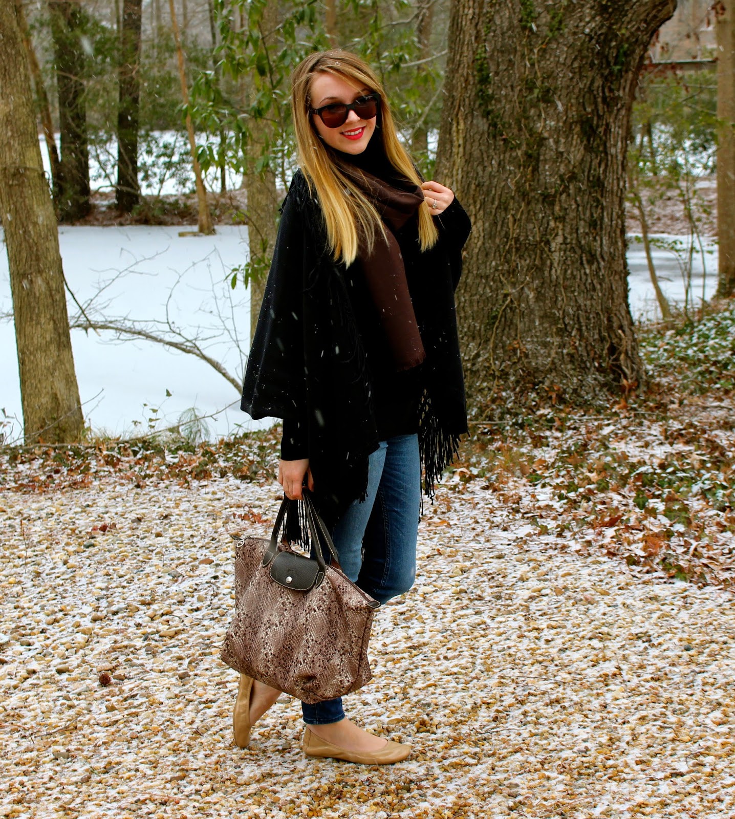 Wearing: Sunglasses-House of Harlow, Scarf- Love Quotes, Kimono- House of Harlow 1960 ‘Sadie’, Top- INC, Jeans-Abercrombie and Fitch, Shoes-Cole Haan, Bag-Longchamp (similar here)