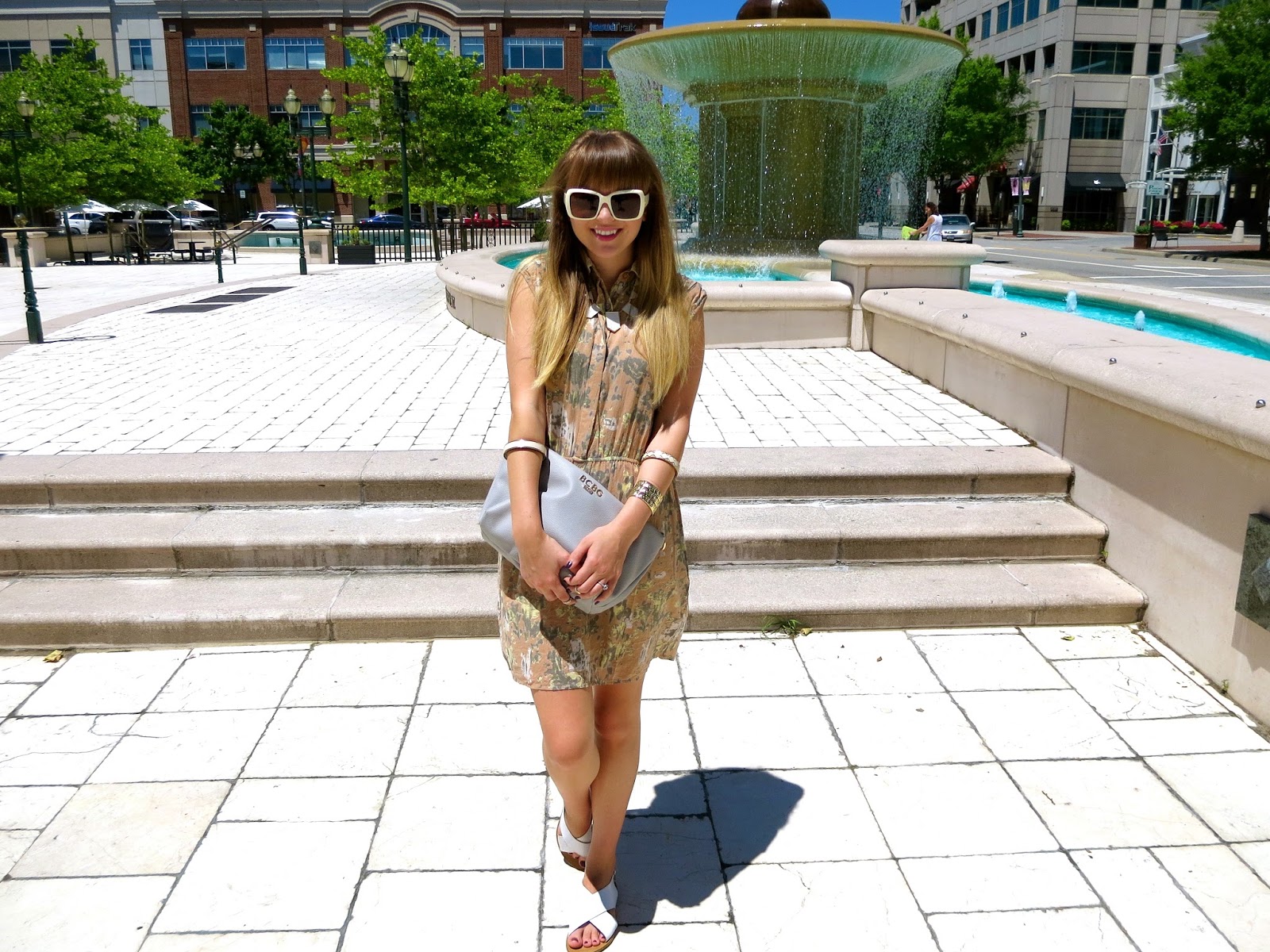 Wearing: Sunglasses/Jewelry/Shoes– House of Harlow 1960, Dress- Winter Kate, Bag- BCBG Paris
