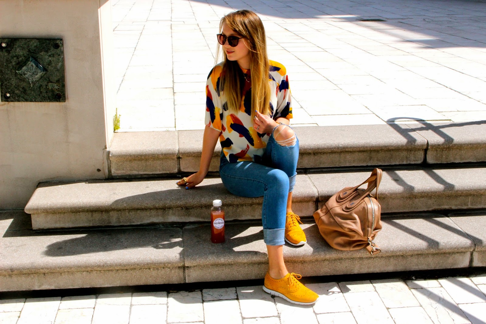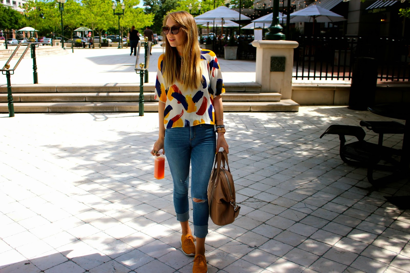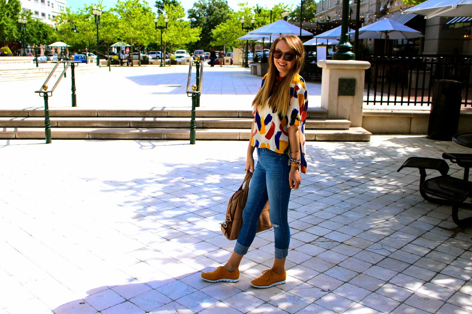 Wearing: Sunglasses-House of Harlow1960 ‘Samples’, Necklace- House of Harlow 1960, Top- Zara, Tank- Primark, Belt- Cole Haan, Jeans- Abercrombie and Fitch , Bag- Givenchy ‘Nightingale’, Watch-Michael Kors, Bracelets- House of Harlow 1960 ‘Acute Cuff’ and ‘Gunmetal Pave Cuff’, Shoes- Cole Haan ‘Wing Oxfords’ in Suede
