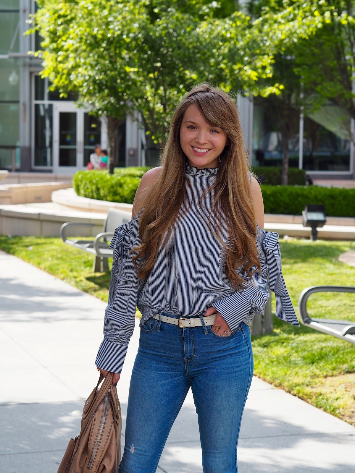 I love the peekaboo shoulders on this! I've been getting super into this trend this spring, and love how you styled it here!